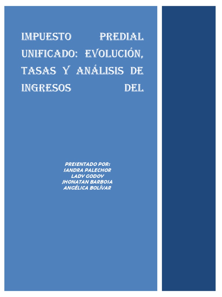 El impuesto predial unificado es un impuesto municipal, de manera que cada municipio se encarga de recadar los fondos que provienen de él, y se paga de por su parte, la base gravable del impuesto predial unificado es el avalúo catastral asignado por las autoridades catastrales, y se establecen en.